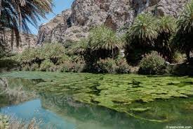 Preveli beach is located about 35km south of Rethymno. Beach of Preveli, also known as Lake Preveli, is located at the exit of the imposing Kourtaliotikos Gorge, where the Grand River (Megalos Potamos) flows. It is certainly the most famous beach in south Crete, accepting thousands of visitors every summer. During the ’60s and ’70s, it was a favorite destination for the hippies. On the banks of the Grand River there is a large colony of Theophrastus palm trees, which give the region a sense of a tropical landscape. The river, forming a small lake, 500m long, before emptying into the sea, has water all year round. You can walk along the river, under the shade of palm trees and other trees, and start ascending in the beautiful canyon. You can swim in the cold ponds formed in the gorge.